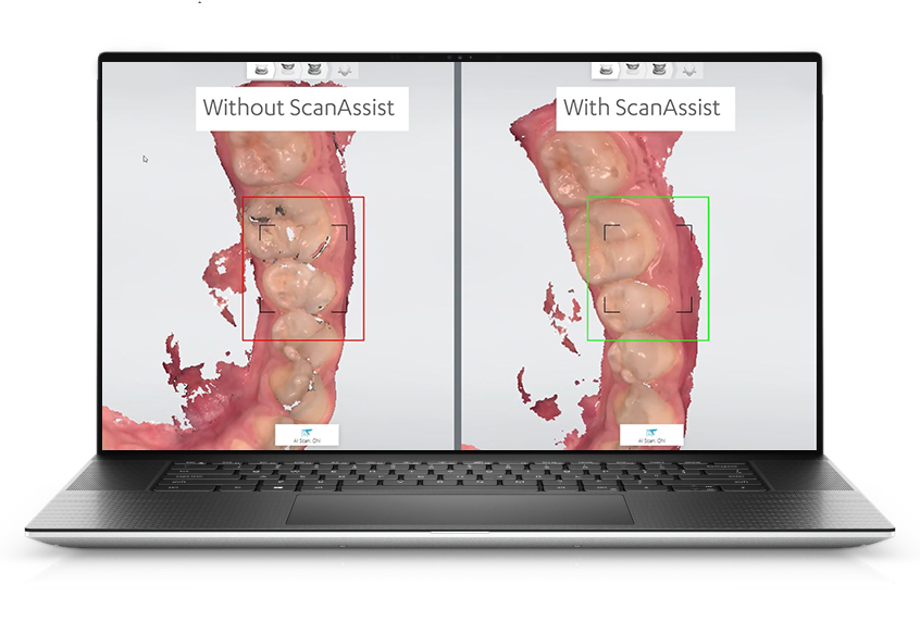 TRIOS 5 introduces ScanAssist intelligent alignment technology. The ScanAssist engine optimizes your scans while you scan to make your dental scanning smoother and faster. Working within the scanner, ScanAssist helps to stich the thousands of images together more efficiently. When you are building the digital model, it enables you to catch the data more easily, and go over the areas that you might have missed. It seamlessly stiches and fixes them. In other words, ScanAssist optimizes your scan while you scan.