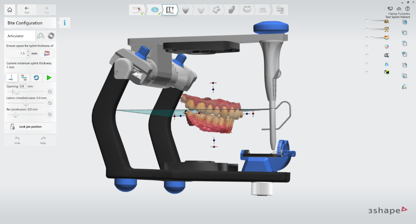 It is now possible to lower the bite in the virtual articulator in case the patient was not scanned in the correct therapeutic bite.