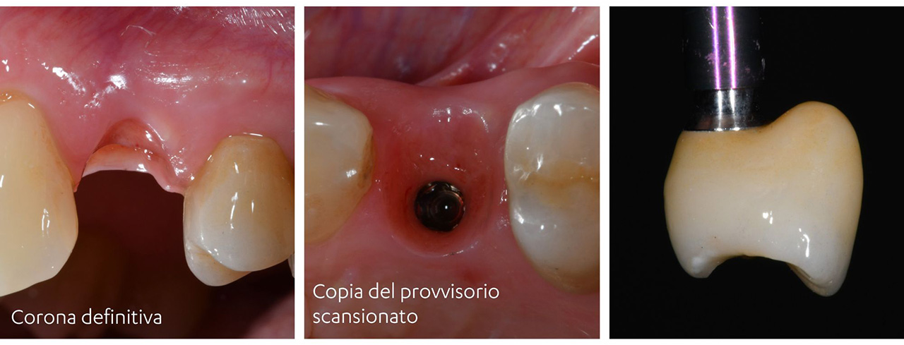 Con la tecnica da noi proposta possiamo replicare contestualmente la forma del provvisorio, il tragitto transmucoso e la posizione spaziale dell’impianto in relazione con l’antagonista, esattamente come l’abbiamo creata.