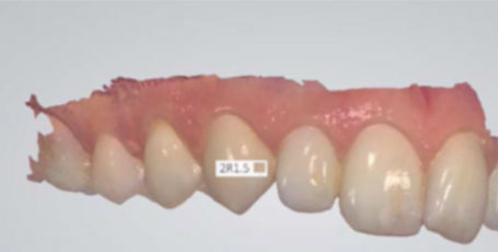 I colori dei denti sono integrati nella scansione. Inoltre, le scansioni digitalmente condivisibili TRIOS® possono essere completate con foto e video intraorali HD, dato che TRIOS® include una camera intraorale che consente di ottenere foto e video di alta velocità ed è integrata nello scanner intraorale.